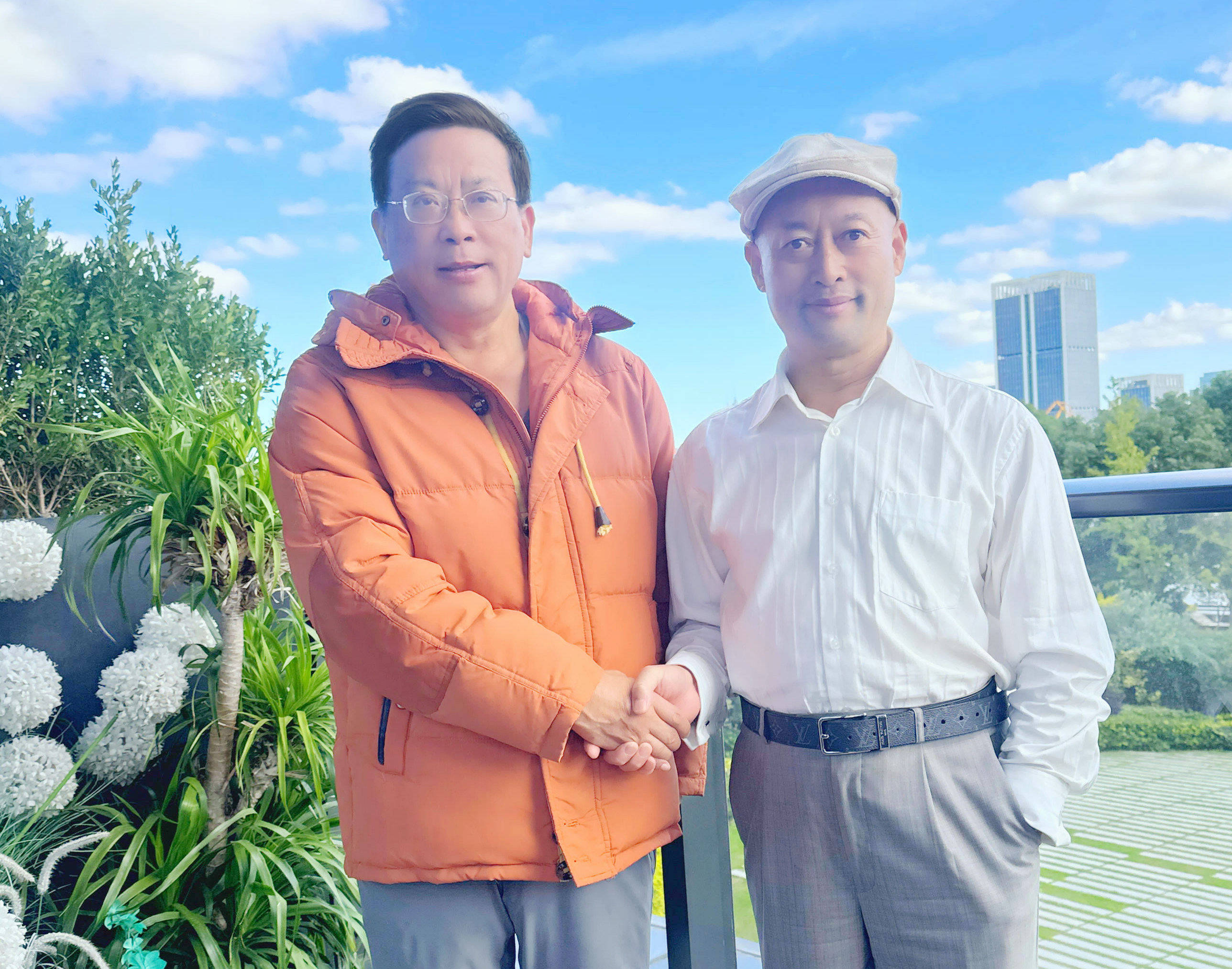 吴礼明博士(左)与于大江博士(右)在滨临黄浦江畔的上海繁花滨江酒店留影 龚昌铃 摄